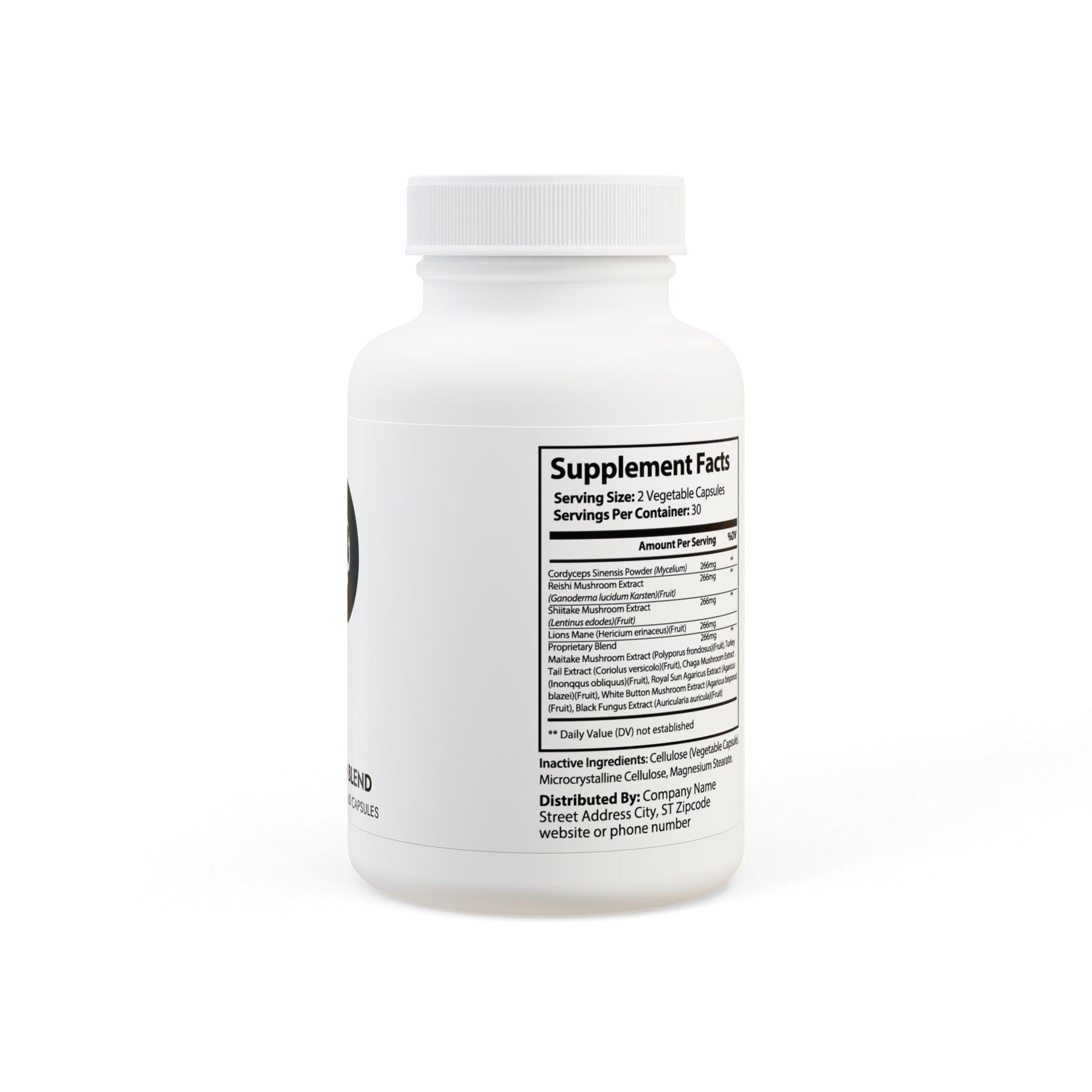 Ingredients: Cordyceps Sinensis Powder (Mycelium), Reishi Mushroom Extract, (Ganoderma lucidum Karsten)(Fruit), Shiitake Mushroom Extract, (Lentinus edodes)(Fruit), Lions Mane (Hericium erinaceus)(Fruit), Proprietary Blend, Maitake Mushroom Extract (Polyporus frondosus)(Fruit), Turkey Tail Extract (Coriolus versicolor)(Fruit), Chaga Mushroom Extract, (Inonqqus obliquus)(Fruit), Royal Sun Agaricus Extract (Agaricus blazei)(Fruit), White Button Mushroom Extract (Agaricus bisporus), (Fruit), Black Fungus Extract (Auricularia auricula)(Fruit), Cellulose (Vegetable Capsule), Microcrystalline Cellulose, Magnesium Stearate.